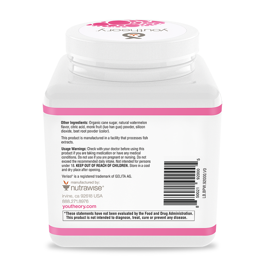 This patented and clinically-supported collagen is specially optimized for beauty applications to support noticeably firmer and smoother skin with fewer wrinkles.* Verisol® Collagen Peptides help stimulate skin metabolism and counteract the loss of collagenous extracellular matrix from the inside, improving the skin surface structure, reducing cellulite and supporting nail health.*